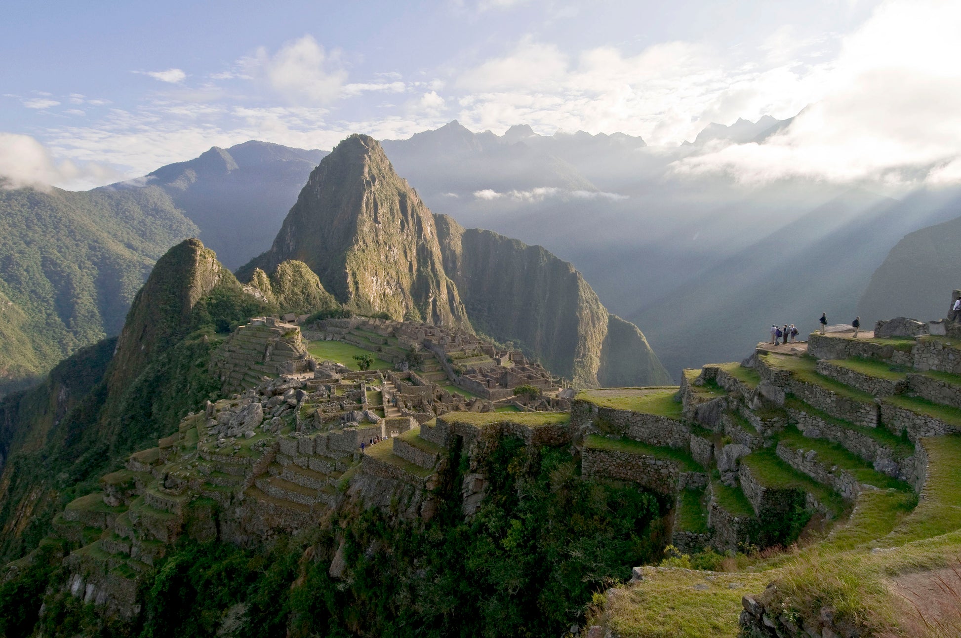 Transfer to the hydroelectric station, then hike (~2.5 hrs) along the tracks to Aguas Calientes. Lunch in town, then bus up to Machu Picchu for a guided visit (~2 hrs). Evening train to Ollantaytambo, then transfer to Cusco.
